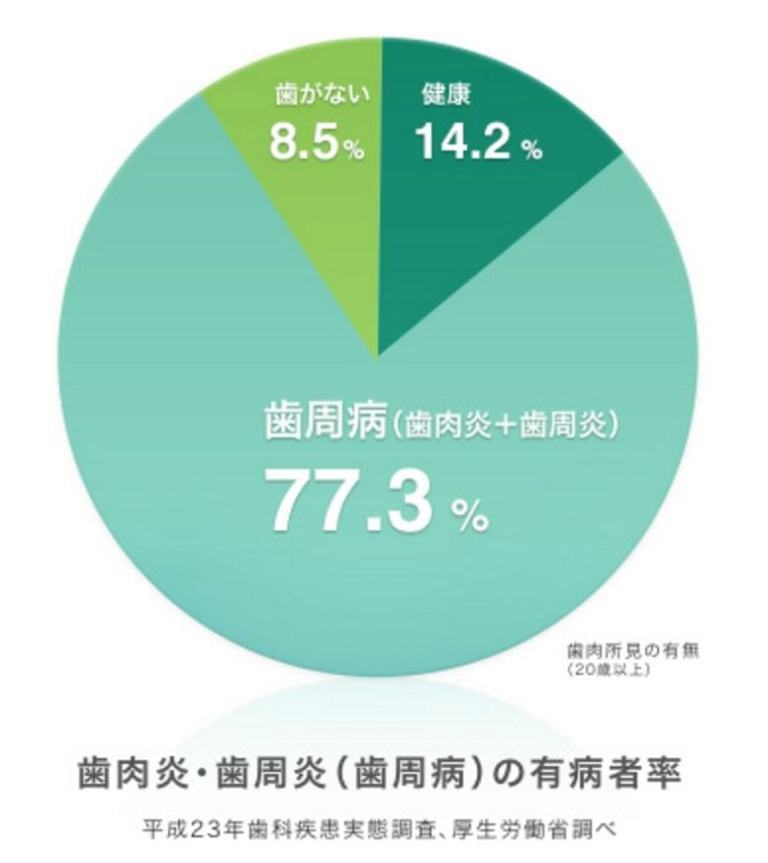 実は成人(日本人)の約8割の人が歯周病で、多くの人が口臭発生の原因を抱えているそうだ。