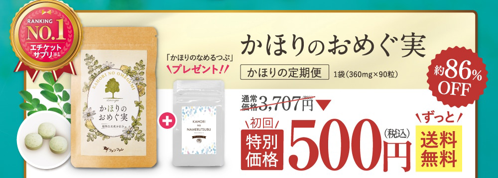 なぜなら、定期便のお申し込みで、定価3,707円のかほりのおめぐ実を初回500円で試すことができるから。